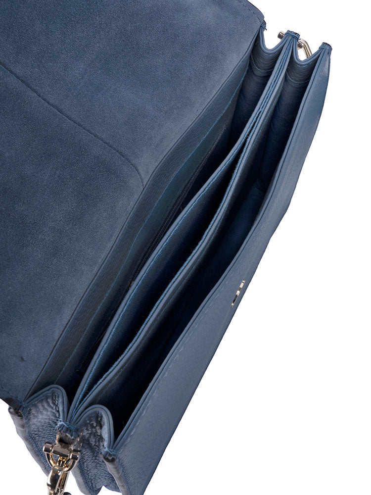 Unleash your undeniable fashion sense with the Flapover Concertina Sling which is available in Brown smooth leather and Denim Blue pebble leather. There is a detachable and adjustable crossbody strap while the main compartment features a flapover closure for the concertina design. In addition, there is a slip pocket with magnetic closure at the back. A Gold logo and hardware provide the classy finishing touches. The carefully curated leather Cellini Diva Collection provides the key to creating a classic contemporary look for sustained style.