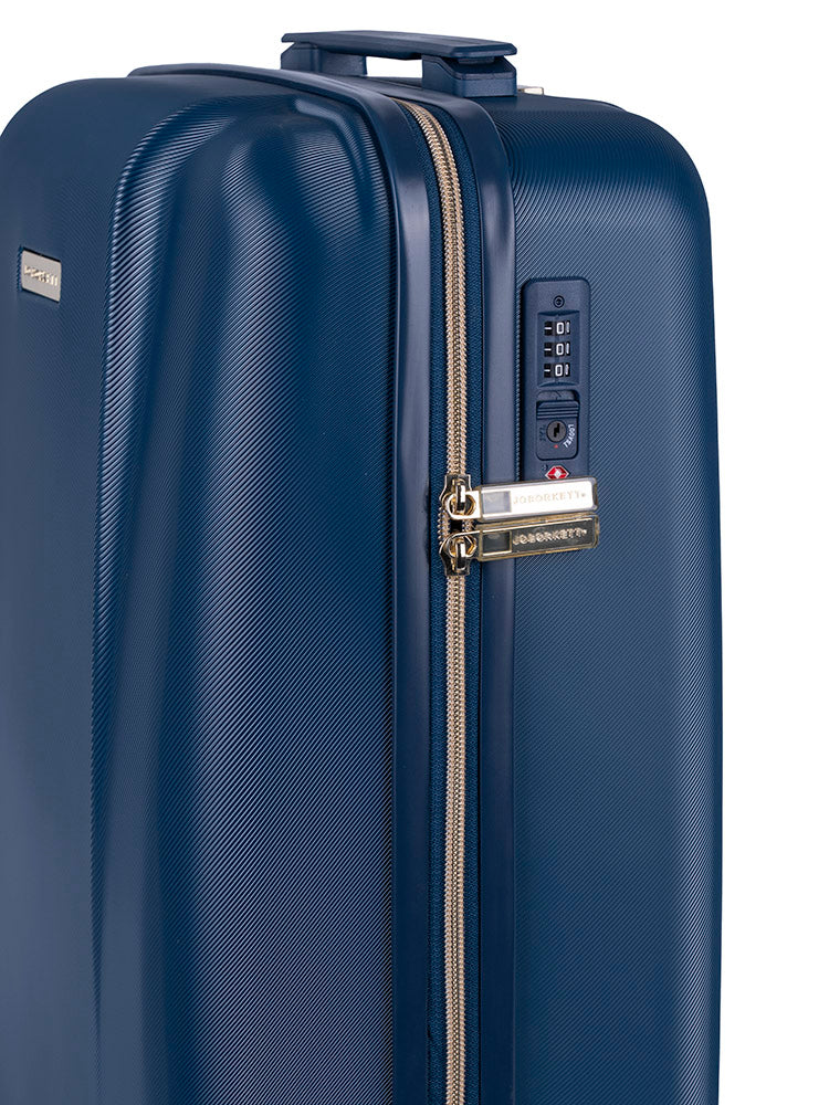 Make the most of every memorable moment of your journey with this delightfully appealing 4-wheel Carry On Trolley Case which offers convenient top and side carry handles and 4 double glider wheels. The interior is beautifully enhanced with a vibrant red lining and elastic tie-down straps. The Jo Borkett Nouveau luggage Collection features Art Deco-inspired luggage with a modern twist. Available in Twilight Blue, Merlot and Deep Slate with soft gold hardware, this range has been designed to create a sleek and timeless elegance that symbolizes class and sophistication.