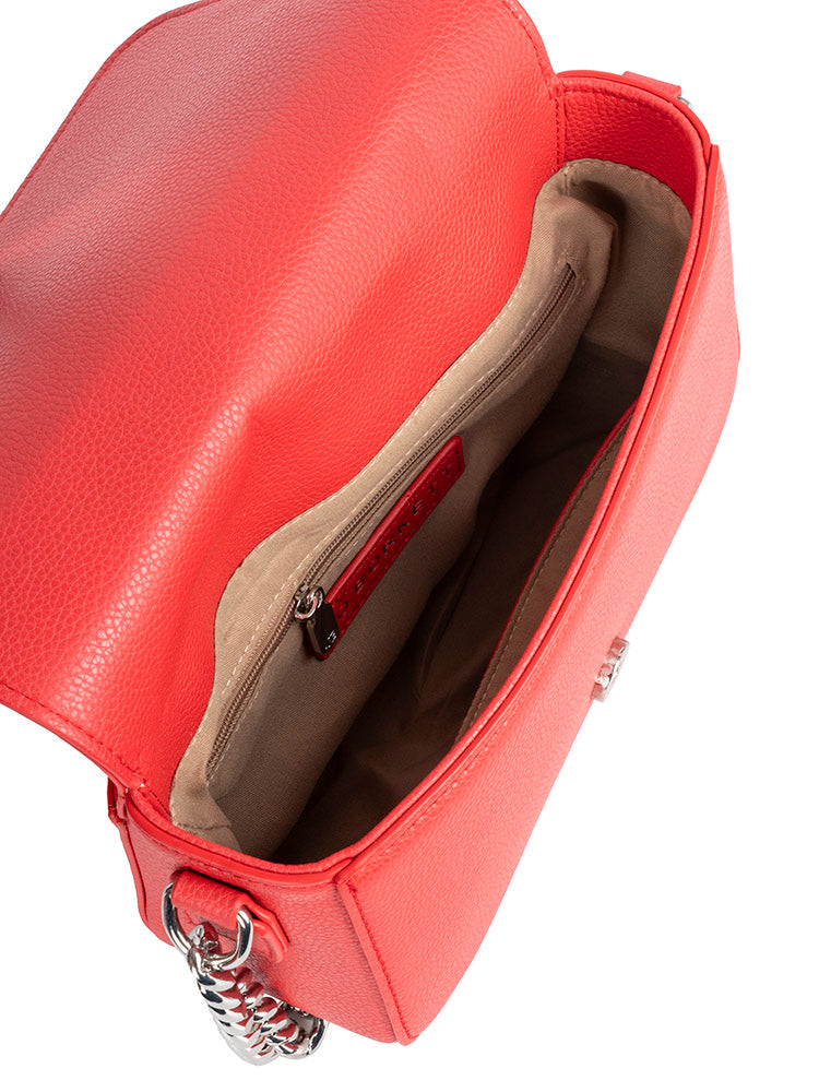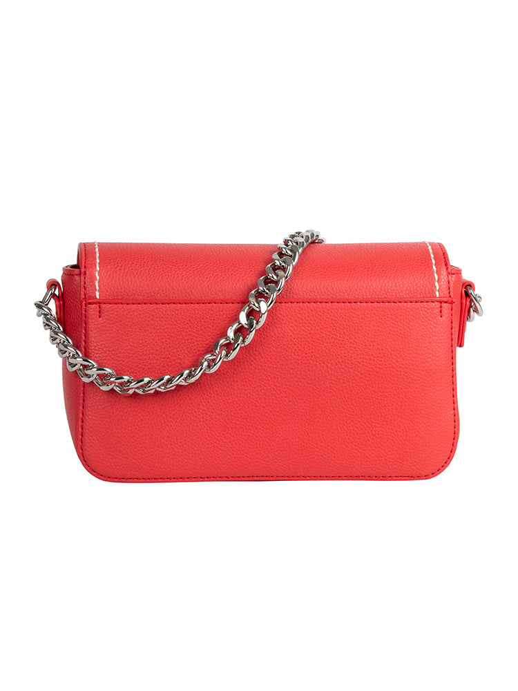 The fashionable and fabulous Flapover Sling is the perfect way to elevate your impeccable sense of style to a new level. Enjoy the versatility of using either the broad adjustable shoulder strap or the chain handle which perfectly showcases this eye-catching accessory. Keep all essential items organised in the main zipped compartment which opens to reveal a neutral interior lining fitted with zip and slip pockets. The Jo Borkett Skye Flapover Bag is available in Black, Taupe and Red with a bold embossed Jo Borkett logo and exquisitely framed with stitching detail and silver hardware for an irresistible look.