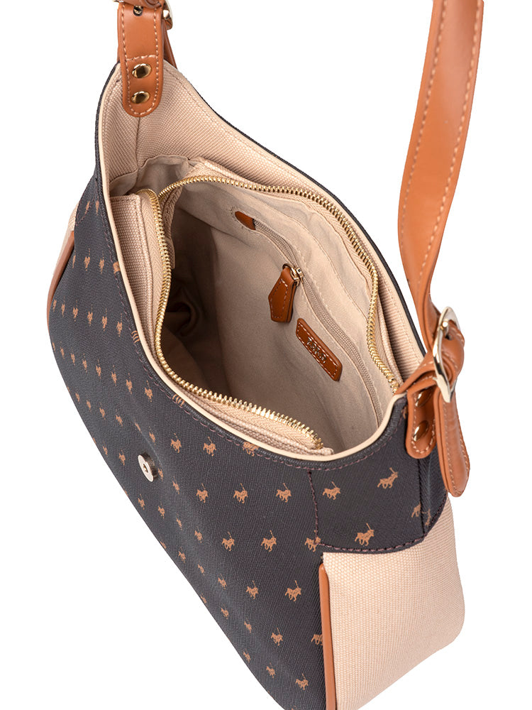 Make a memorable entrance with this sophisticated Shoulder Bag showcasing your endless elegance. The long shoulder strap allows for all-day comfort while the top zip keeps all essentials safe and secure in the interior organiser. The magnetic flapover closure is beautifully finished with an eye-catching buckle. The Polo Chalbi Collection which invokes the awe-inspiring majesty of the desert is available in Brown and Cream with contrasting hues to add a dramatic element well-suited to any occasion, while the iconic Polo logo provides an enduring symbol of commitment to excellence.