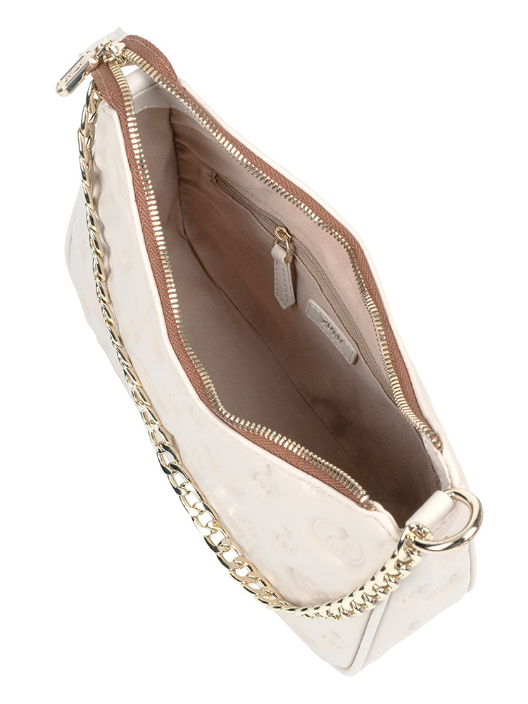This Small Sling has been designed to keep pace with modern lifestyles and features a main zipped compartment and a neutral interior lining with internal organiser pockets. Use the eye-catching top chain handle or the detachable and adjustable Polo branded woven webbing strap for added convenience. An embossed Polo Logo monogram background in Ecru and Eclipse offers timeless refinement teamed with contemporary elegance in the out-of -this-world Polo Luna collection.