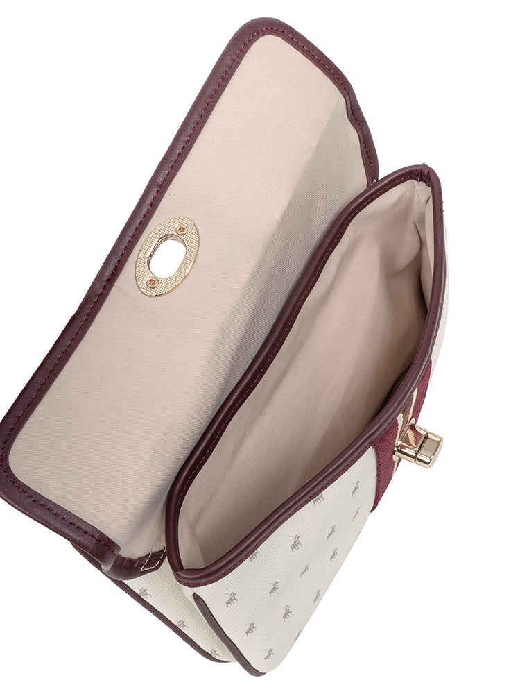 The Double Pocket Sling will bring a touch of class to your active lifestyle. This versatile everyday accessory can be worn over the shoulder as a sling bag or as a crossbody bag to suit your preference. There is a main zipped compartment with an inner organiser and a front flap pocket with a turn-lock closure to keep all items in place and easy to access. There are 8 card slots and a zip section as well. The Polo Oxford collection is available in Camel and Grey featuring the distinctive pony print background enhanced with a contrasting colour stripe down the centre - the Camel background has a bold white stripe and is framed with black accents, while the Grey background has a Burgundy stripe and accents and soft gold hardware to add a sporty element to the collection.