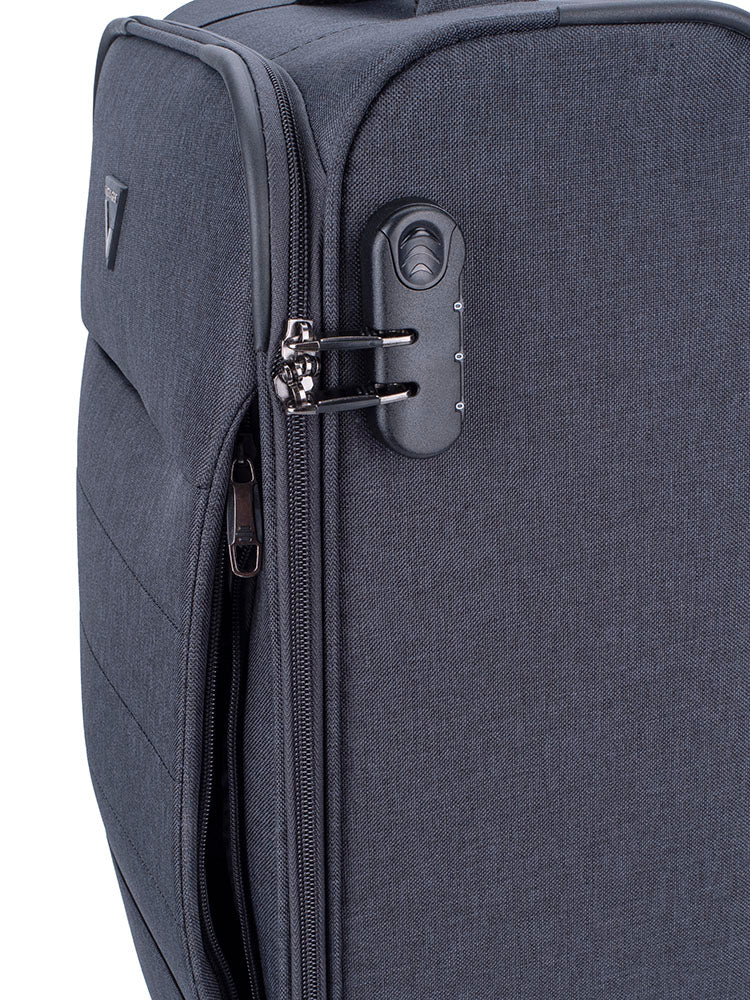 Enjoy an exciting vacation where white sands and golden sunshine await with the Large 4-wheel Trolley Case. The 4 double-glider wheels and telescopic pulling handle ensure a smooth arrival at your chosen destination. There is a convenient top handle, as well as front and side zipped compartments on the front panel for easy access and storage. The Voyager Getaway range has been manufactured using the durable Softside polyester on the outer shell in Anthracite, Grey and Navy with an integrated combination lock and a 3-year warranty.
